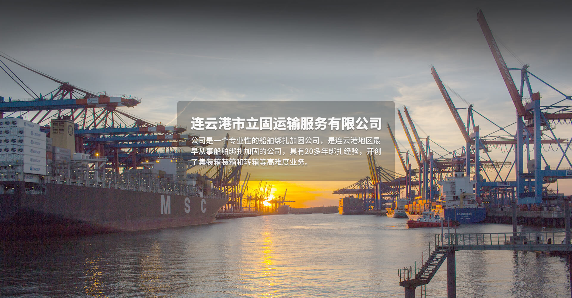 連云港市立固運(yùn)輸服務(wù)有限公司成立于1997年,是集生產(chǎn)、銷售于一體的實體型企業(yè),主要經(jīng)營范圍包括國內(nèi)外船舶貨物綁扎加固,船舶物料供應(yīng)與回收;專業(yè)加工生產(chǎn)各類型的木托盤、木制包裝箱、免熏蒸膠合板木托盤,膠合板木箱等,并為客戶設(shè)計定制、安裝服務(wù)。